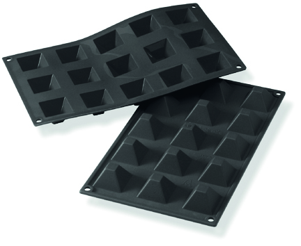 Moule en silicone du fabricant italien Martellato aux propriétés anti-adhérentes. Résiste à des températures comprises entre - 60ºC et 280ºC. En cuisine, le silicone est vraiment un matériau incroyable - il supporte de grandes plages de température, se démoule facilement et est facile à nettoyer. Utilisez-le comme moule à pâtisserie ou pour mouler, par exemple, des mousses, des pannacottas, des crèmes glacées ou toute autre idée crémeuse. Le silicone est solide mais suffisamment souple pour rendre les moules extrêmement faciles à utiliser. Il n'est pas nécessaire de lubrifier les moules et ils n'absorbent pas les arômes ou les parfums. Si vous vous intéressez à la pâtisserie, aux desserts ou tout simplement aux surfaces parfaitement lisses (comment ne pas le faire ?), les moules en silicone sont sans aucun doute l'accessoire qu'il vous faut. Ce moule permet de réaliser 15 pyramides. Les moules de Martellato mesurent 17,5 x 30 cm.