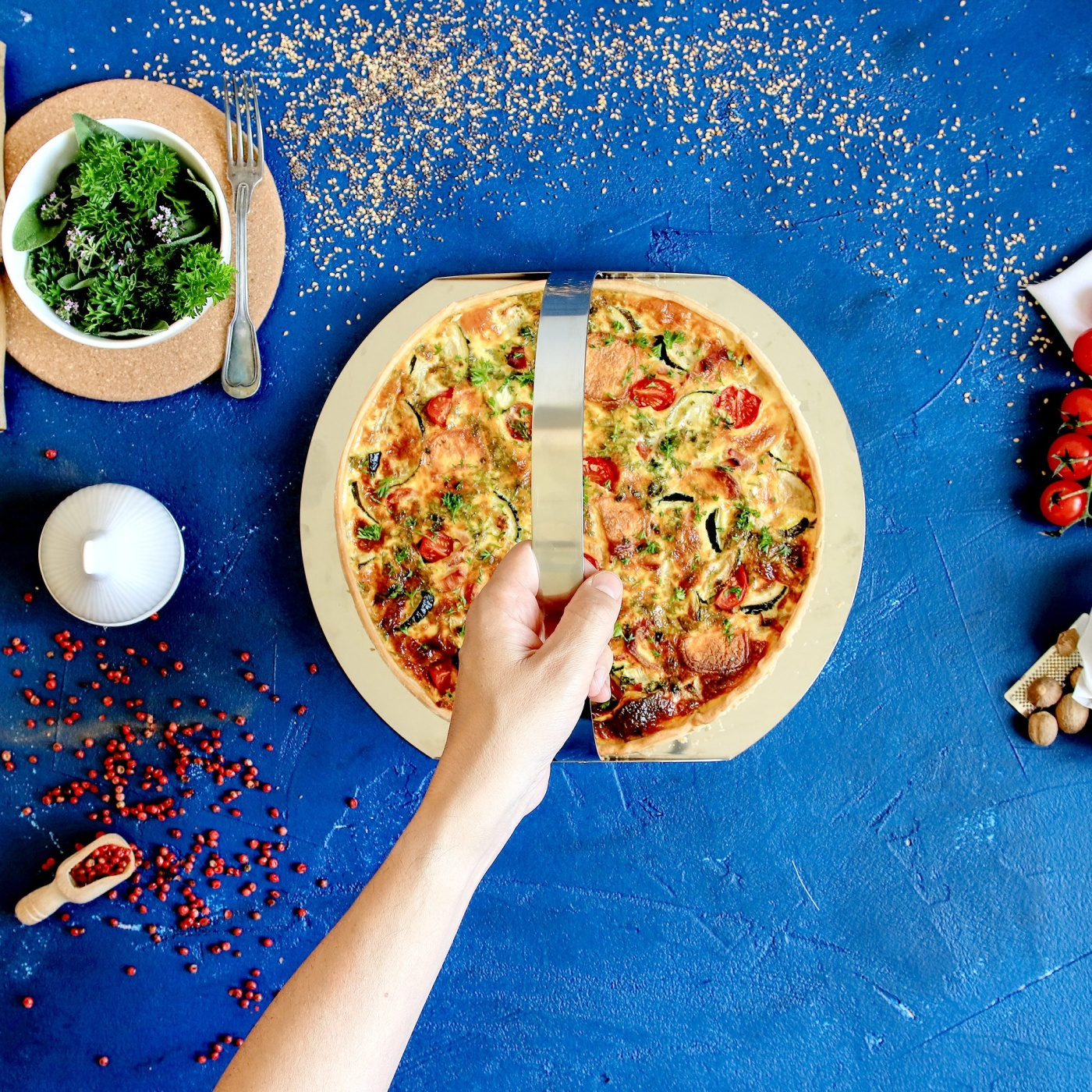 Plat à tarte en acier inoxydable 18/10 au design très astucieux. Comme pour un moule à charnière, il est facile de se débarrasser des parois, mais avec ce modèle, c'est presque encore plus facile qu'avec une écluse à orge. De plus, vous pouvez découper des morceaux et les servir directement dans le moule, qui se soulève facilement pour suspendre votre galette, votre tarte tartin ou votre flan patissier, ou n'importe où vous avez envie de faire de la pâtisserie. Il passe aussi bien au four qu'au grill ou au lave-vaisselle. Fabriqué en France à l'ombre des Alpes suisses. 28 cm de diamètre, 33 cm de long au total, 2,8 cm de haut.