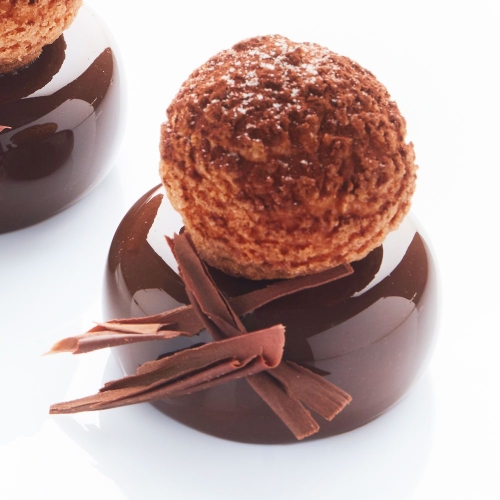 Parmi la gamme Martellato de moules en silicone noir un peu plus élégants, un peu plus luxueux et un peu plus modernes, nous vous présentons le cercle. Il fait des cercles, comme son nom l'indique. Les moules ont une belle forme arrondie et produisent des gâteaux qui sont parfaits pour verser de la crème glacée. Les gâteaux mesurent 69 mm de diamètre et 35 mm de hauteur (volume de 110 ml). La taille du moule est de 197x176 mm. Chaque moule peut contenir six pièces. Il peut résister à des températures comprises entre -60°C et +230°C.