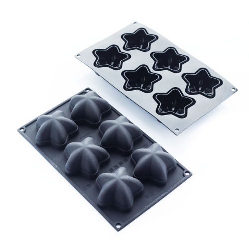 Parmi la gamme de moules en silicone noir de Martellato qui sont un peu plus élégants, un peu plus luxueux et un peu plus modernes, nous vous présentons Marina qui vous donnera des étoiles. Les moules ont une belle courbe et permettent de faire des gâteaux sur lesquels il est très agréable de verser du glaçage. Les gâteaux mesurent 77x74 mm et 40 mm de haut (volume 105 ml). La taille du moule est de 297x176 mm. Chaque moule peut contenir six pièces. Les moules peuvent résister à des températures comprises entre -60°C et +230°C.