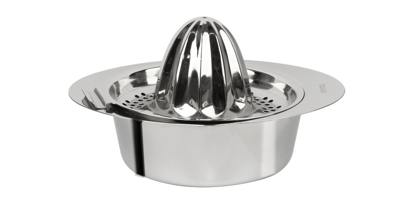 Presse-agrumes classique en acier inoxydable 18/10. Avec une passoire qui empêche les pépins de se déplacer et un bec verseur dans le récipient. Lavable en machine.