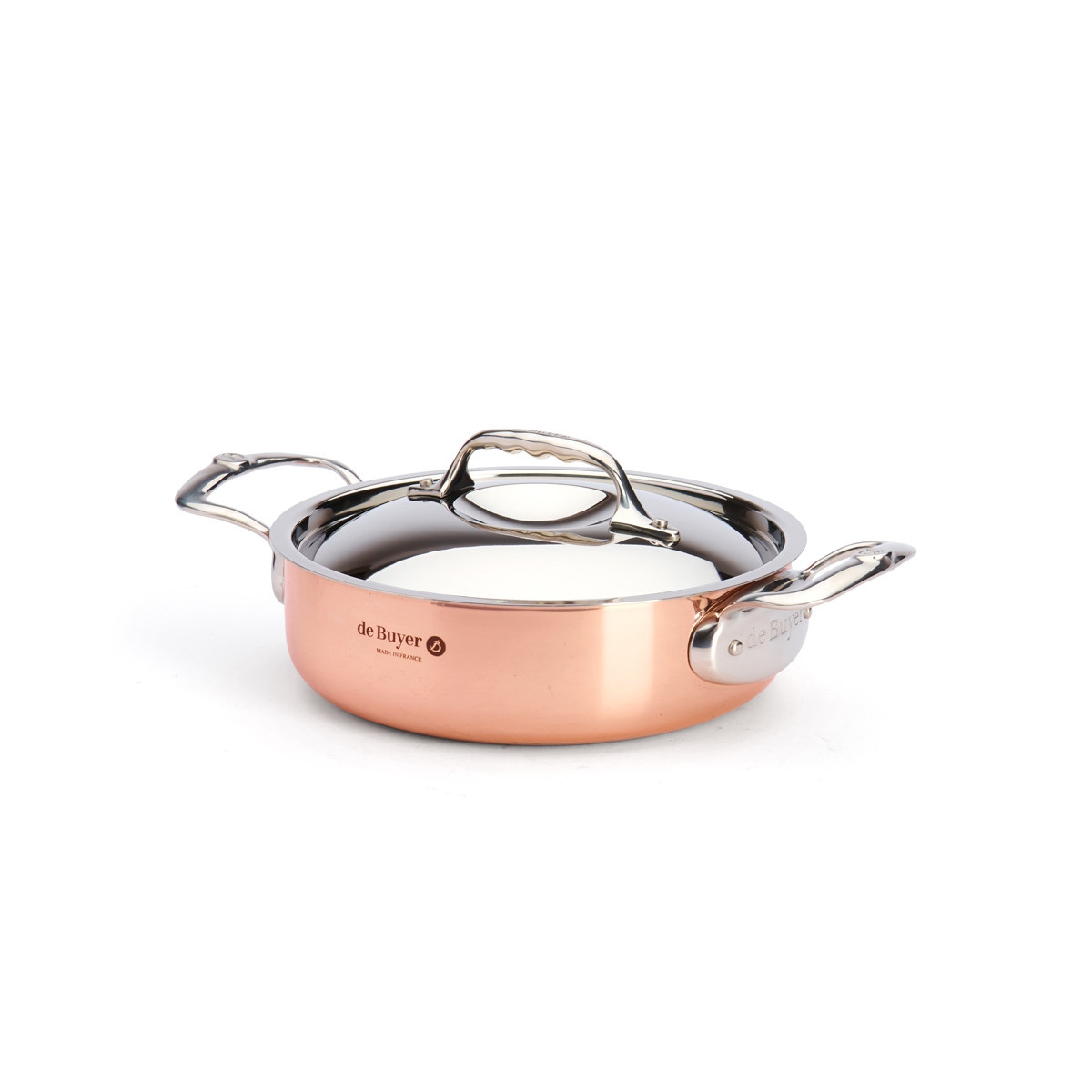 Une poêle ou une sauteuse basse pour dorer, frire, chauffer des sautés ou cuire des ragoûts. Un modèle bas offre une grande surface d'évaporation et de réduction. Les bords légèrement arrondis permettent de l'atteindre facilement partout et les poignées courtes permettent de la placer dans le four, sur la table ou parmi d'autres récipients sur la cuisinière. La gamme Prima Matera, la plus élégante de De Buyer, est composée à 90 % de cuivre pour une distribution optimale de la chaleur. Le cuivre n'apporte pas seulement un avantage esthétique, il est également très fonctionnel. Les 10 % restants sont constitués d'une fine couche d'acier inoxydable (acier AISI 304), de sorte que vous ne devez pas cuisiner directement sur le cuivre. La poignée et le couvercle sont en acier inoxydable et les casseroles sont équipées d'un socle compatible avec l'induction pour une utilisation dans une cuisine moderne. Laver à la main et polir avec un produit de polissage pour cuivre afin d'en préserver l'éclat. Convient à toutes les sources de chaleur, y compris l'induction. Passe au four mais pas au lave-vaisselle. Disponible en trois tailles : 20cm, 24cm et 28cm.